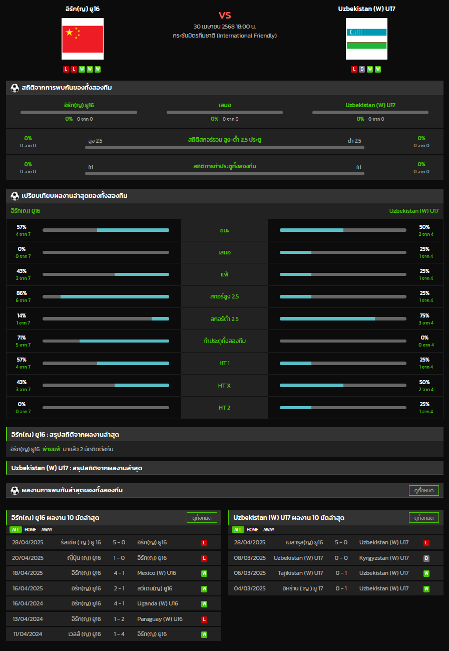 วิเคราะห์บอล [ กระชับมิตรทีมชาติ 2024-25 ] อิรัก(ญ) ยู16 VS Uzbekistan (W) U17