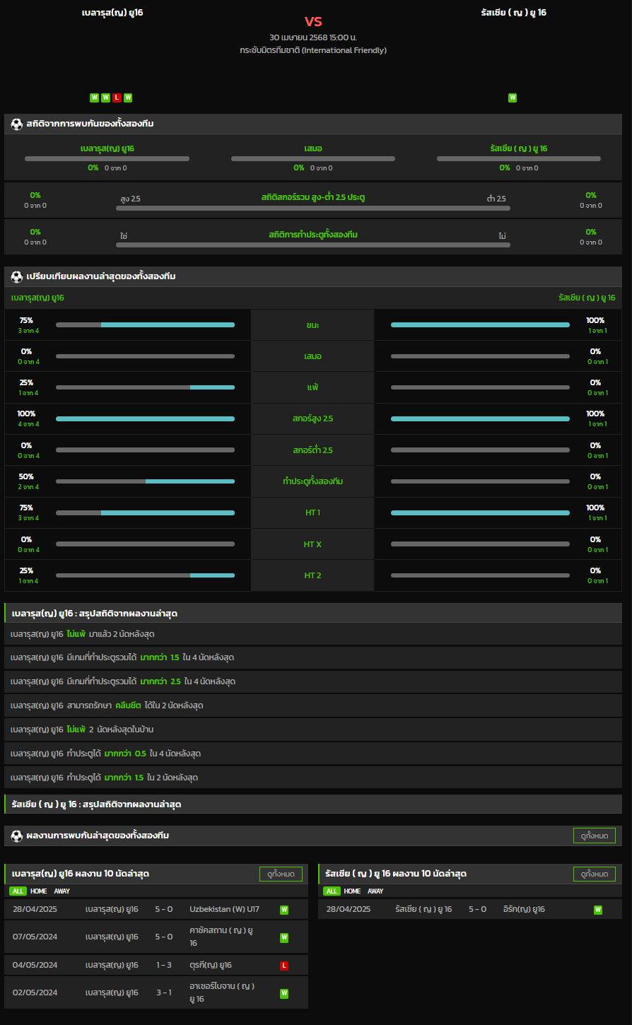 วิเคราะห์บอล [ กระชับมิตรทีมชาติ 2024-25 ] เบลารุส(ญ) ยู16 VS รัสเซีย ( ญ ) ยู 16
