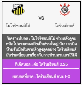 วิเคราะห์บอล [ บราซิล คัพ 2025 ] โนโวริซอนติโน่ VS โครินเธียนส์